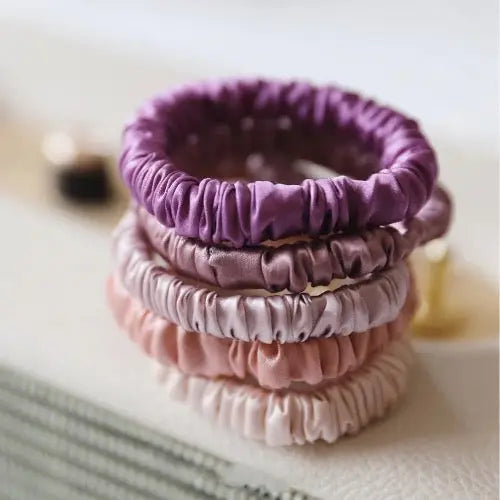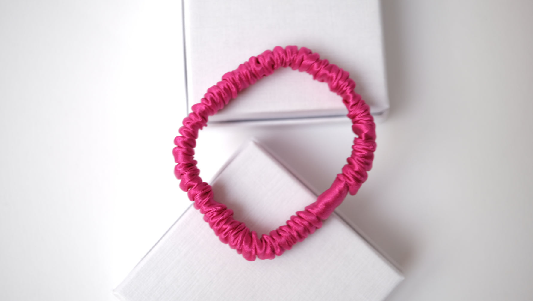 Gönnen Sie sich die luxuriöse Weichheit unserer Haargummis aus 100% Seide, die dafür sorgen, dass Ihr Haar stark und bruchfrei bleibt. Mit einer Breite von 1 cm entworfen, um mühelos eine schicke Dutt-Frisur zu kreieren, ist dieses Haargummi perfekt für jeden Anlass.