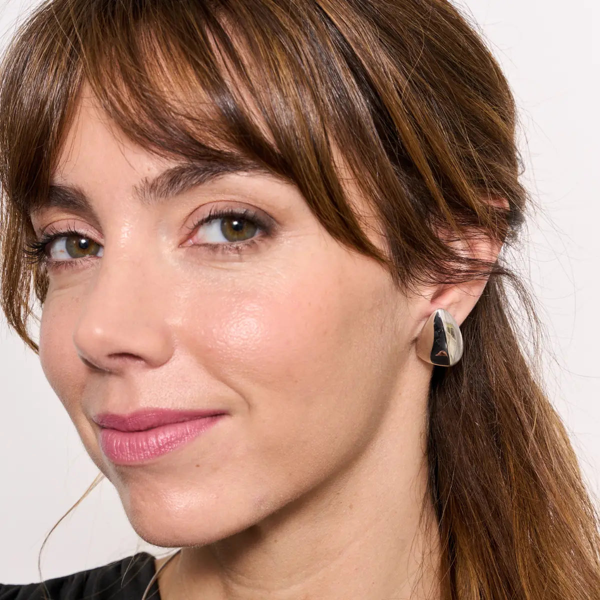 Ohrringe in gewölbter Tropfenform aus poliertem Silber. Ein sehr besonderes Stück, das nicht unbemerkt bleiben wird.