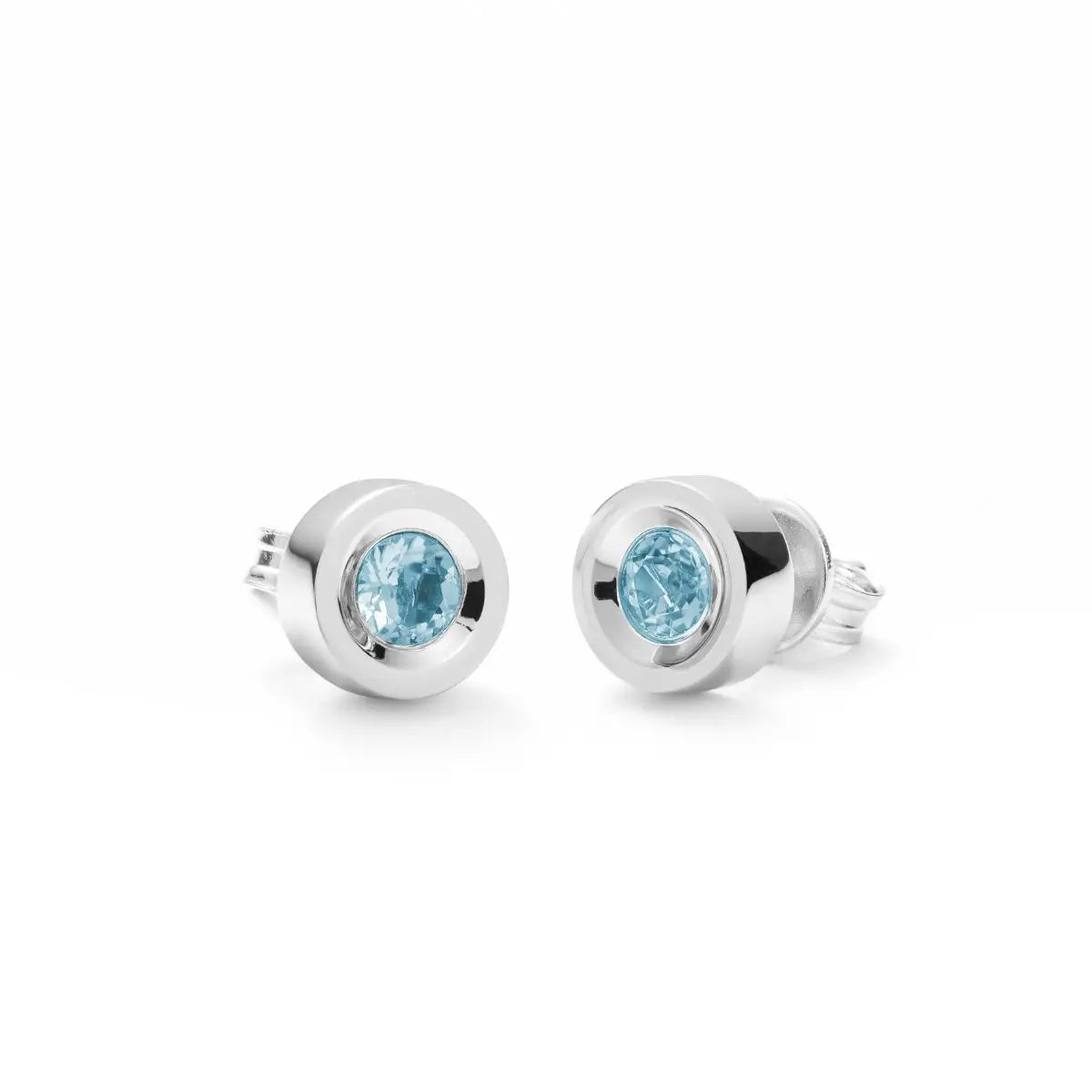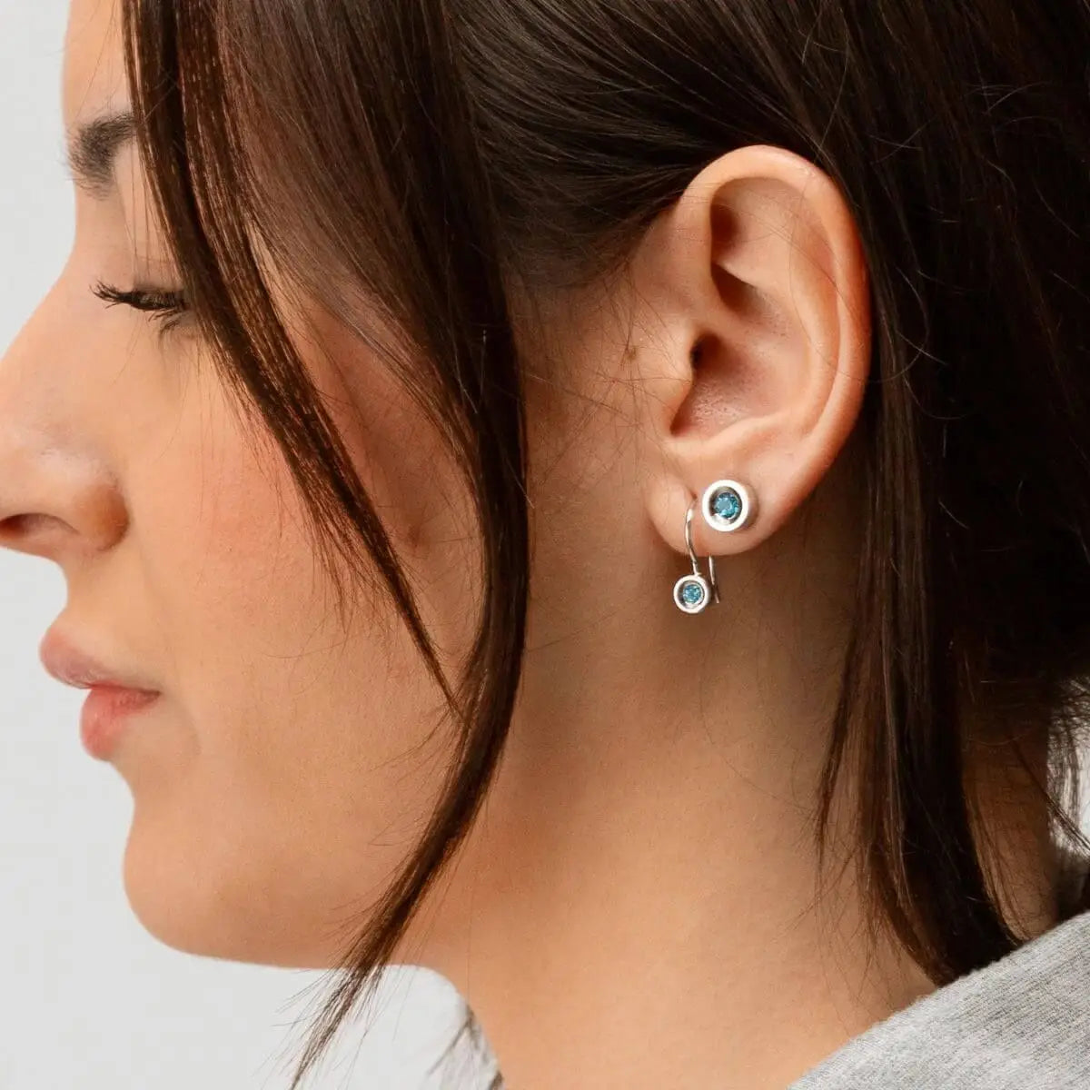 Ohrringe mit Schnappverschluss und facettiertem blauem Topas in der Mitte. Topas sorgt, wie alle blauen Steine, für Weichheit, Ausgeglichenheit, Kommunikation und Verständnis. Diese Ohrringe aus rhodiniertem Silber sind die Ohrringe, die Sie zu allem tragen werden. Ein Muss in Ihrem Schmuckkästchen, um Ihren schlichtesten Looks Farbe zu verleihen.