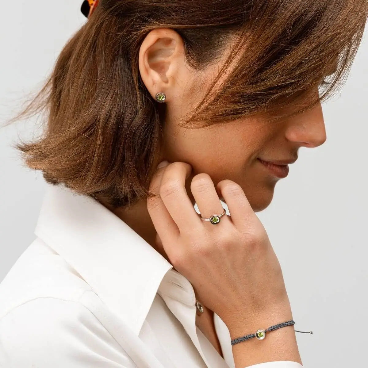 Ohrringe mit Schnappverschluss und facettiertem Peridot in der Mitte. Peridot fördert Selbstliebe und Beziehungen, wirkt frisch und kräftig und hilft, das Bewusstsein für neue Wachstumsmöglichkeiten zu öffnen. Diese Ohrringe aus rhodiniertem Silber sind die Ohrringe, die Sie zu allem tragen werden. Ein Muss in Ihrem Schmuckkästchen, um Ihren schlichtesten Looks Farbe zu verleihen.