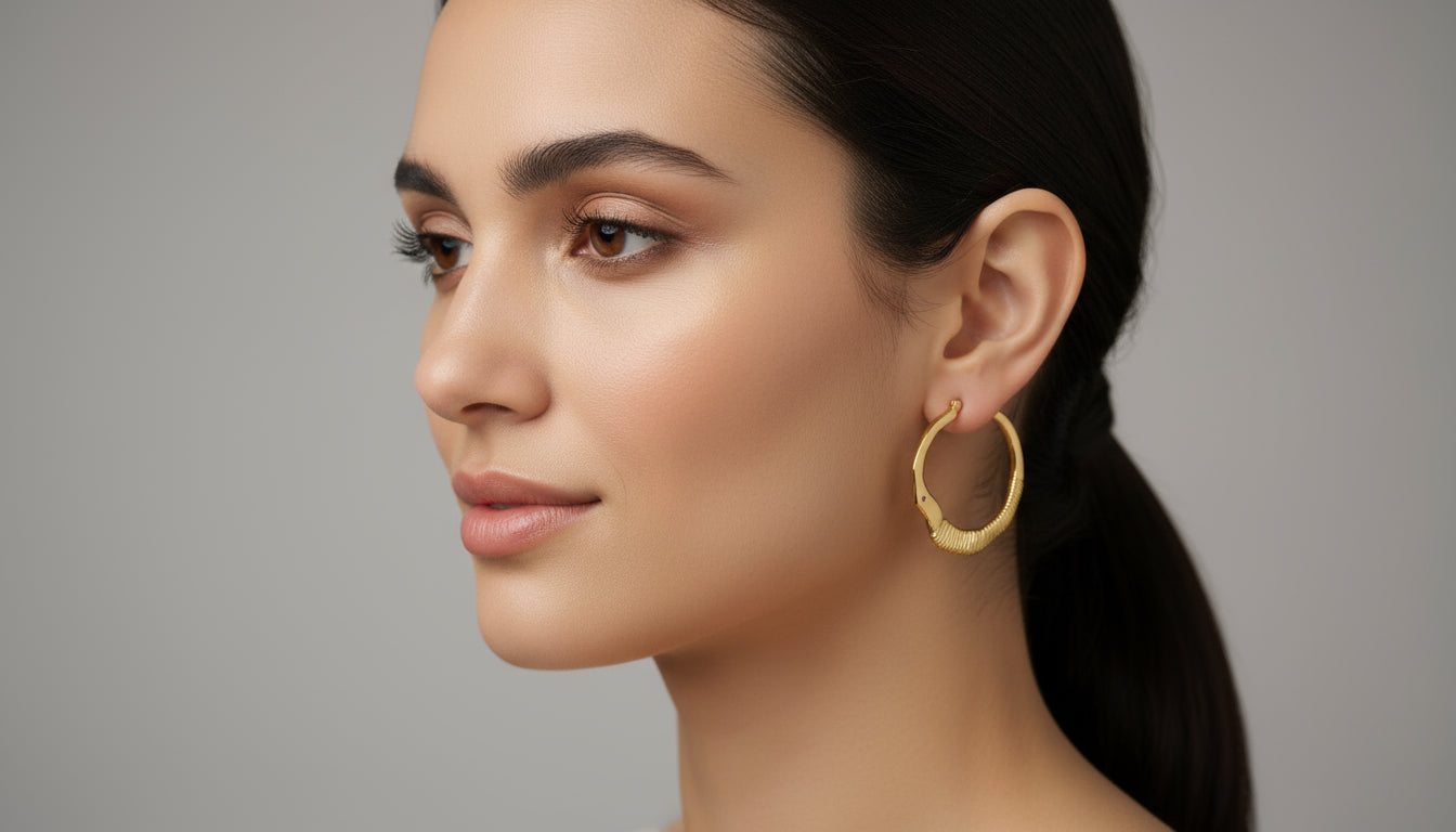 Elegante Reifen Ohrringe mit einem Durchmesser von 2,8 cm und bandartigen Formen. Perfekt für einen stilvollen, natürlichen Look.