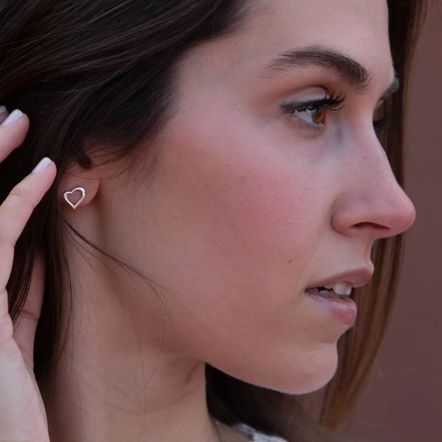 Mini-Ohrringe mit asymmetrischem Herz aus Sterlingsilber und Druckverschluss. Ein Symbol an sich, um Liebe ohne Worte auszudrücken.