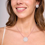 Runder Anhänger, leicht gewölbt in der Mitte, mit unzähligen Rosen, kunstvoll in das Silber graviert. Ein wunderschönes Schmuckstück, das feine Handwerkskunst zeigt. Die Kette ist nicht im Lieferumfang enthalten.
