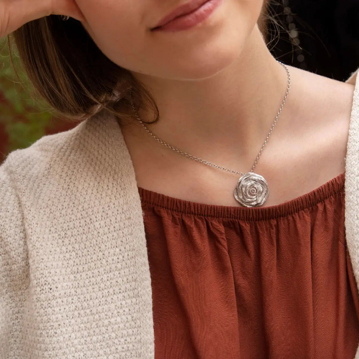 In der Rosenkollektion entwerfen wir Silberblumen – jene, die am stärksten mit Liebe assoziiert werden, und das ist auch der Beweis. Ein Schmuckstück oder eine Blume schenken? Jetzt kannst du beides in einem schenken: eine Blume, die für immer hält.