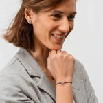 Ohrringe mit Schnappverschluss und facettiertem Granat in der Mitte. Granat fördert Sicherheit und Charakterstärke. Diese Ohrringe aus rhodiniertem Silber sind die perfekten Begleiter zu allem – ein Muss in Ihrem Schmuckkästchen, um selbst schlichte Looks mit Farbe zu versehen.