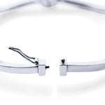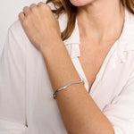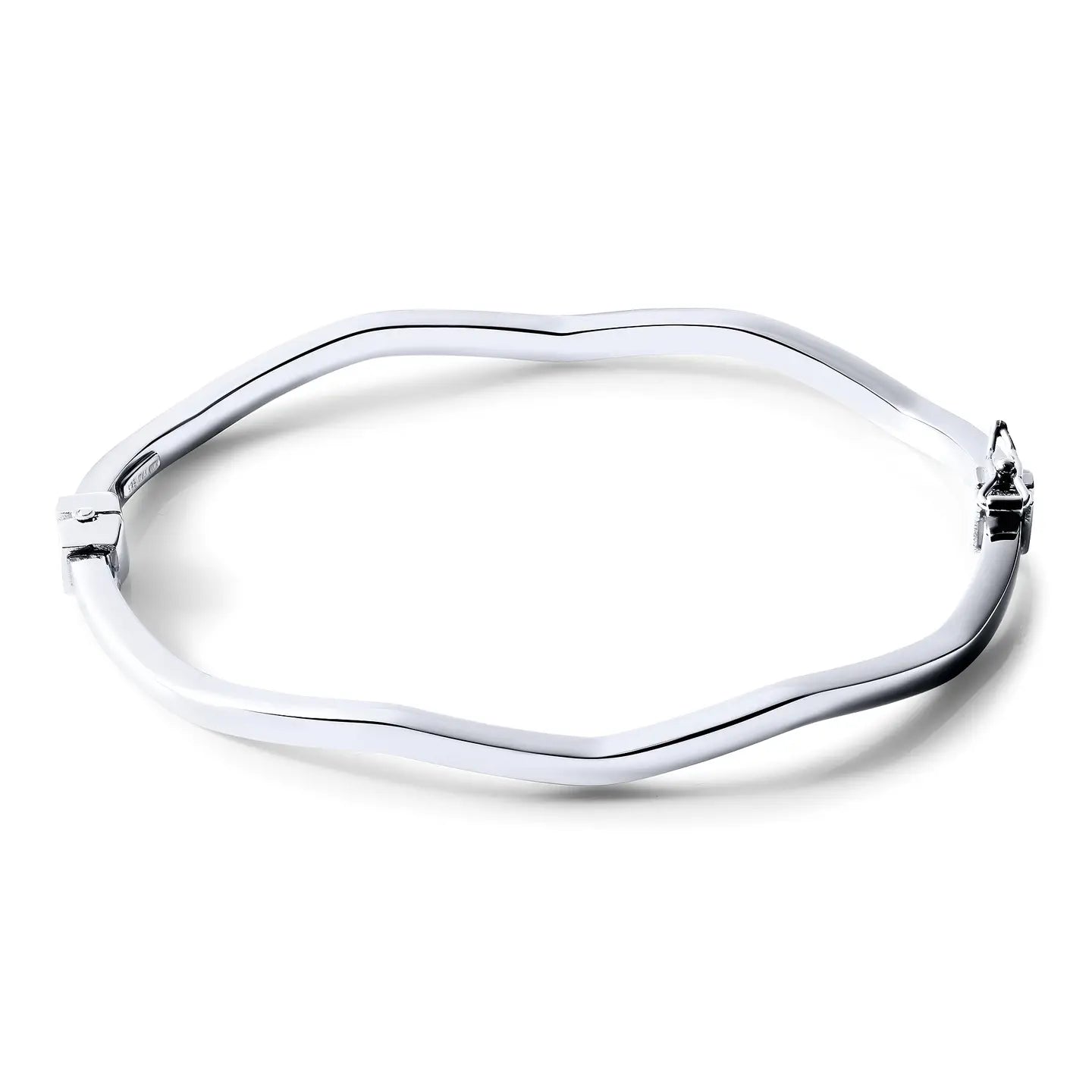 Starres Armband aus poliertem Silber, gefertigt aus einem Draht mit quadratischem Querschnitt von 3 mm Breite. Leicht oval geformt und mit sehr dezenten Wellen. Es öffnet und schließt sich mittels Sicherheitsverschluss, um einfach an- und abzulegen.